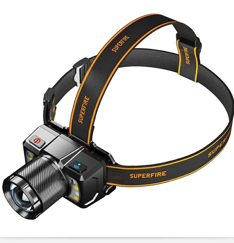 • SuperFire Rechargeable Senor Headlamp with 8 Lighting Modes.
